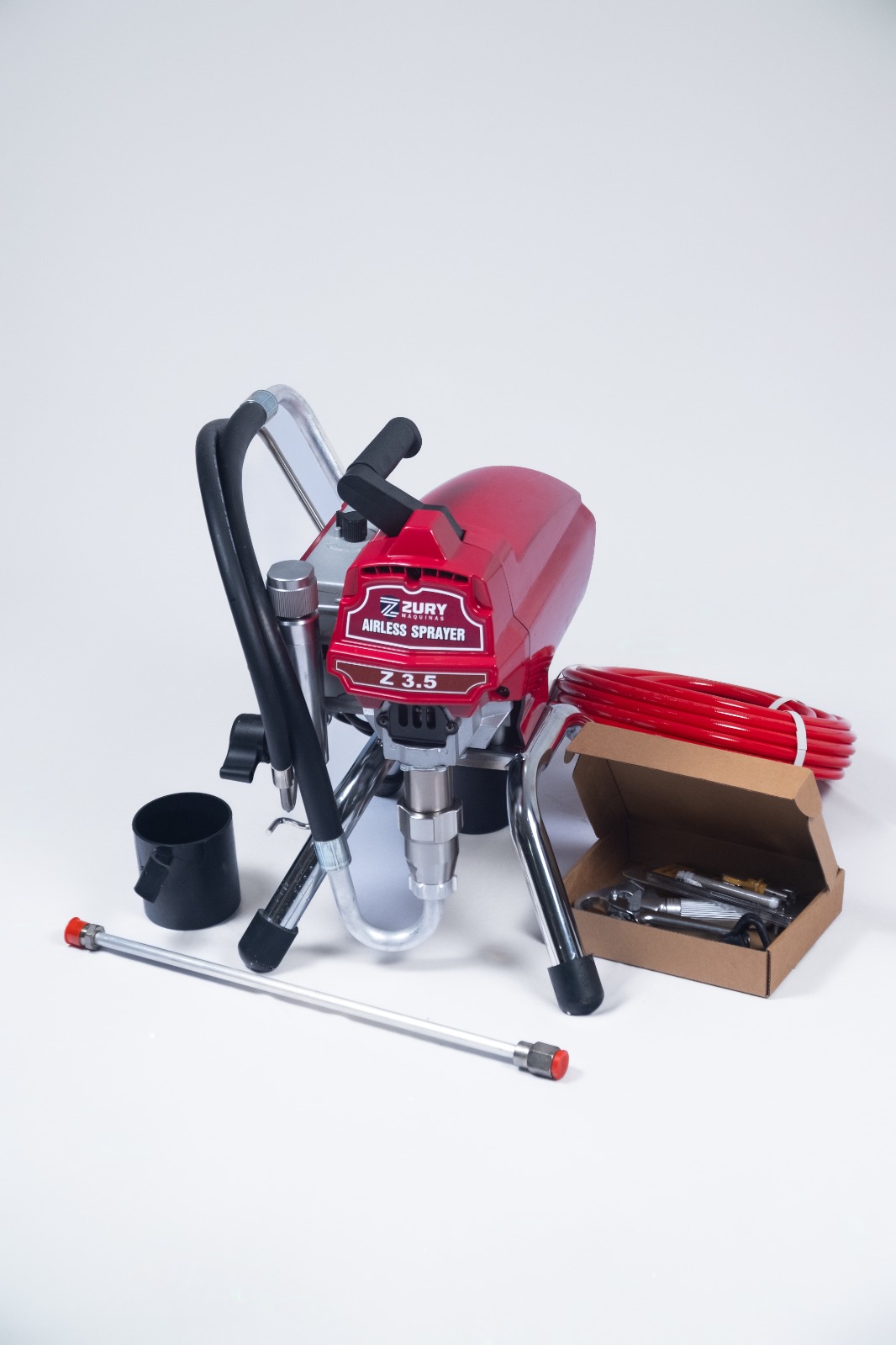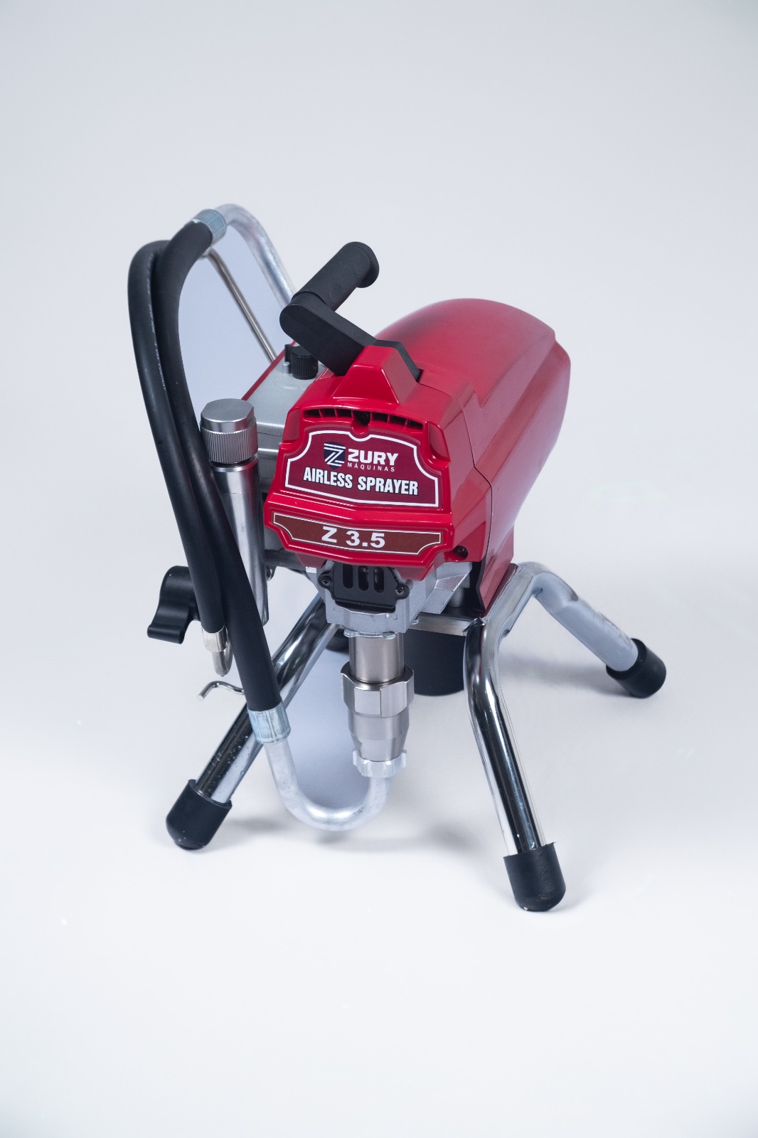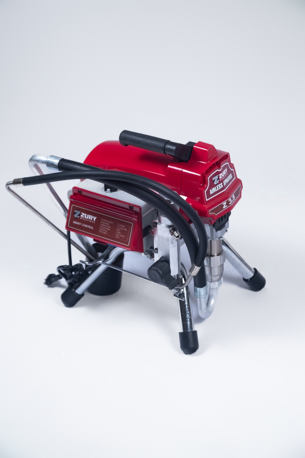 Máquina de pintura airless, na área de construção civil, indicada para produtos leves a base de água como: Latex, Acrílico, Verniz, Selante, Esmalte. Ficha Técnica Potência do Motor: 2200w Frequência de tensão: 220V 50-60Hz Capacidade: 3,5 Litros por minuto Pressão Máxima: 3000 psi