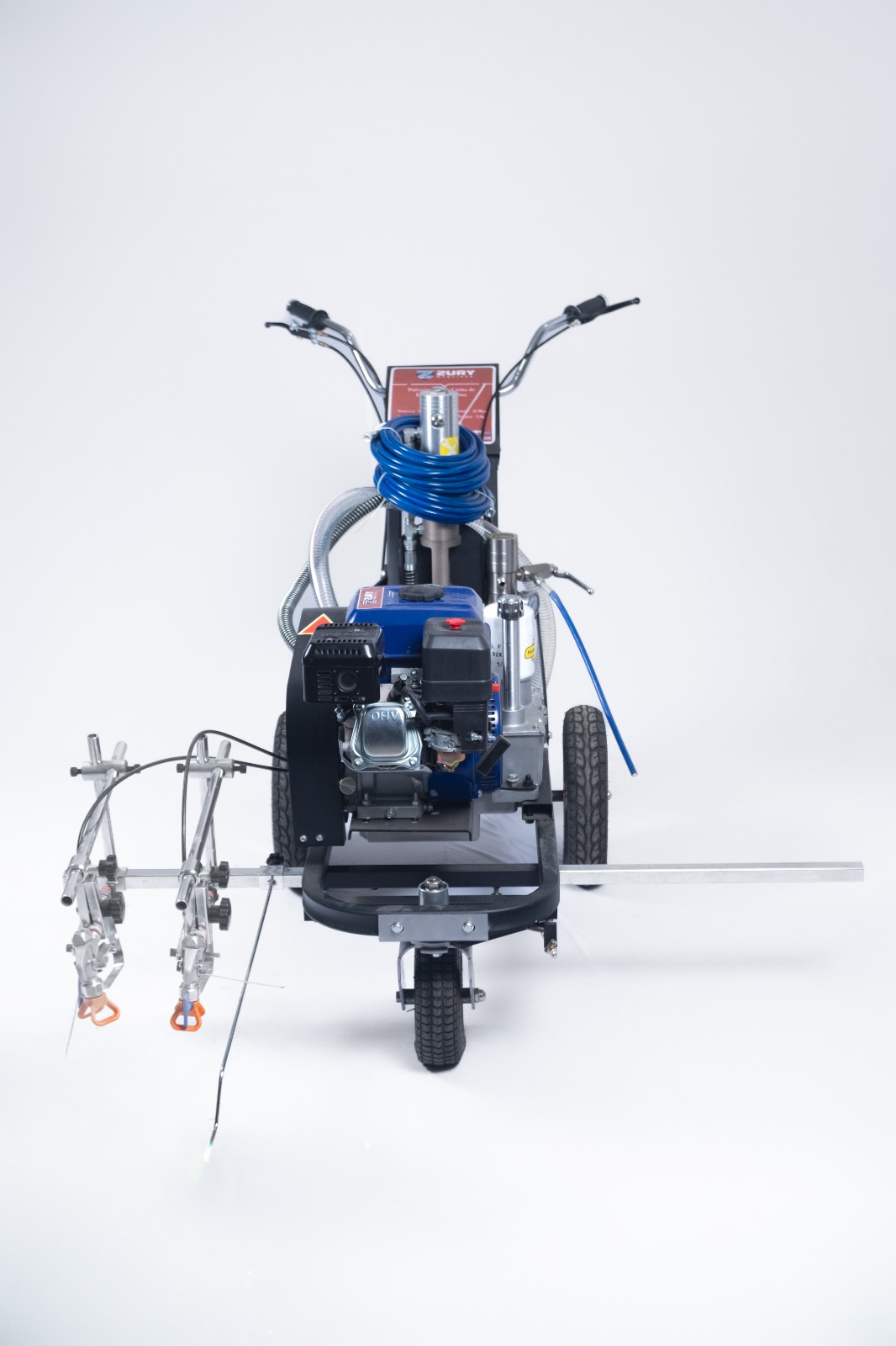 A ZHD 8.0 máquina airless a gasolina para demarcação viária com duas pistolas. Possui 8 HP, fluxo de 6 L/min, pressão de 15 MPa e mangueira de até 50 m. Oferece força, autonomia e produtividade em grandes áreas, com tintas à base de água ou solvente.